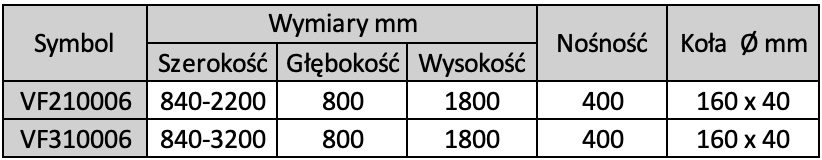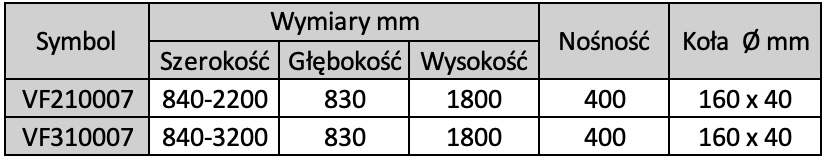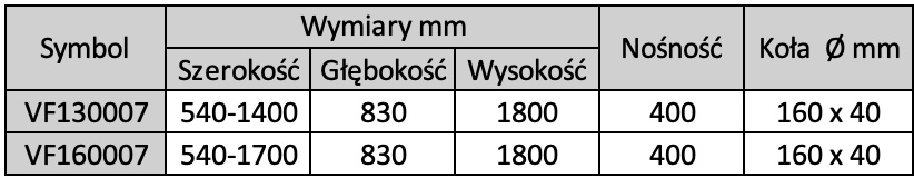- 2 koła obrotowe z hamulcem i 2 koła stałe. Przy nośności od 1.200 kg, koła z precyzyjnymi łożyskami kulkowymi, elastyczne z pełnej gumy z felgą aluminiową