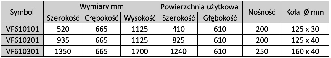 - rodzaj ogumienia: koła pełne z szarej gumy, niebrudzące, z łożyskiem kulkowym z osłoną przeciwwłókienną i osłoną stopy, 2 koła obrotowe z hamulcem EasySTOP i 2 koła stałe