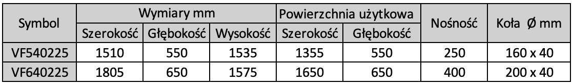 - powierzchnie załadunkowe wykonane z siatki drucianej, rozmiar siatki 50 x 50 mm