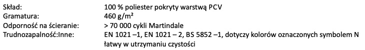 Tkanina podstawowa: 90 000 cykli Martindale