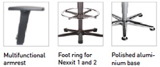 - podłokietniki z regulacją 4D: wysokość, szerokość, głębokość, kąt rozchylenia
