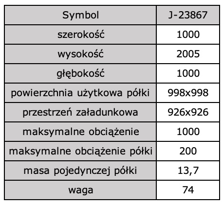 | Nośność (Regały metalowe) | 1000 kg |
