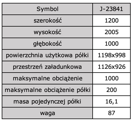 | Szerokość (Regały metalowe) | 1200 mm |