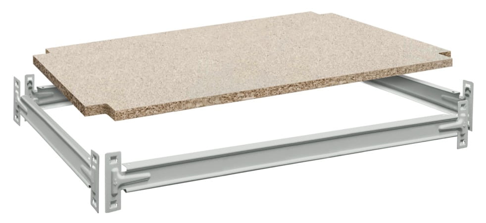 - płyta wiórowa na łącznikach regału wykonanych z giętej blachy