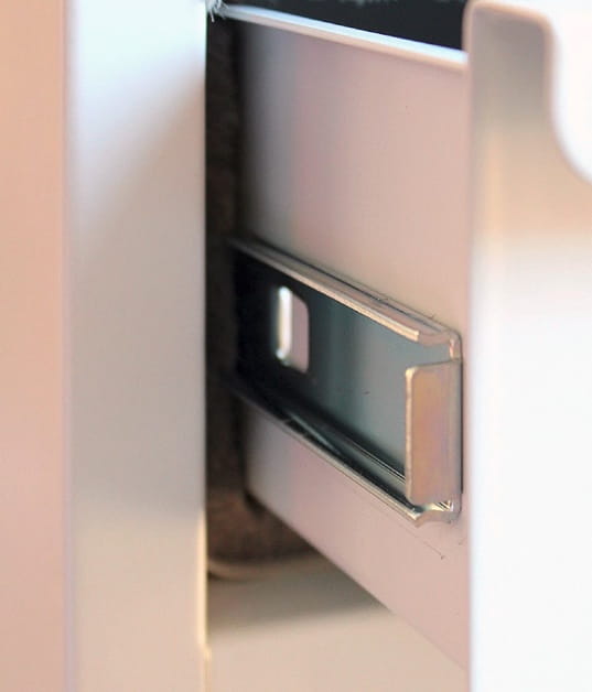 - szuflada jest zamocowana na kulkowych prowadnicach teleskopowych, z blokadą która zabezpiecza przed wypadnięciem