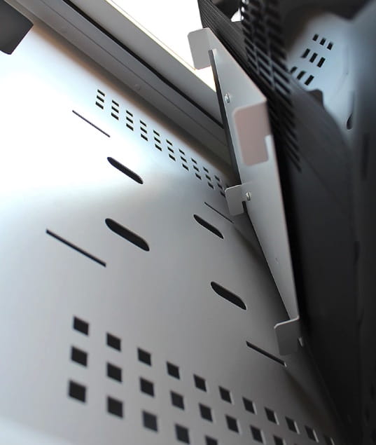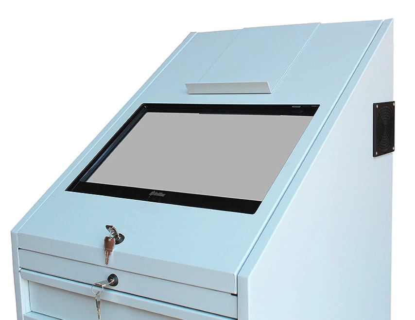 - górna część jest przystosowana do monitora LCD z szybą plexi, przystosowana do umieszczenia monitora LCD wg standardu VESA od 17 do 22 cali, maksymalne wymiary otworu w drzwiach 475 x 615; monitor 550 x 630 mm o maksymalnej głębokości 105 mm