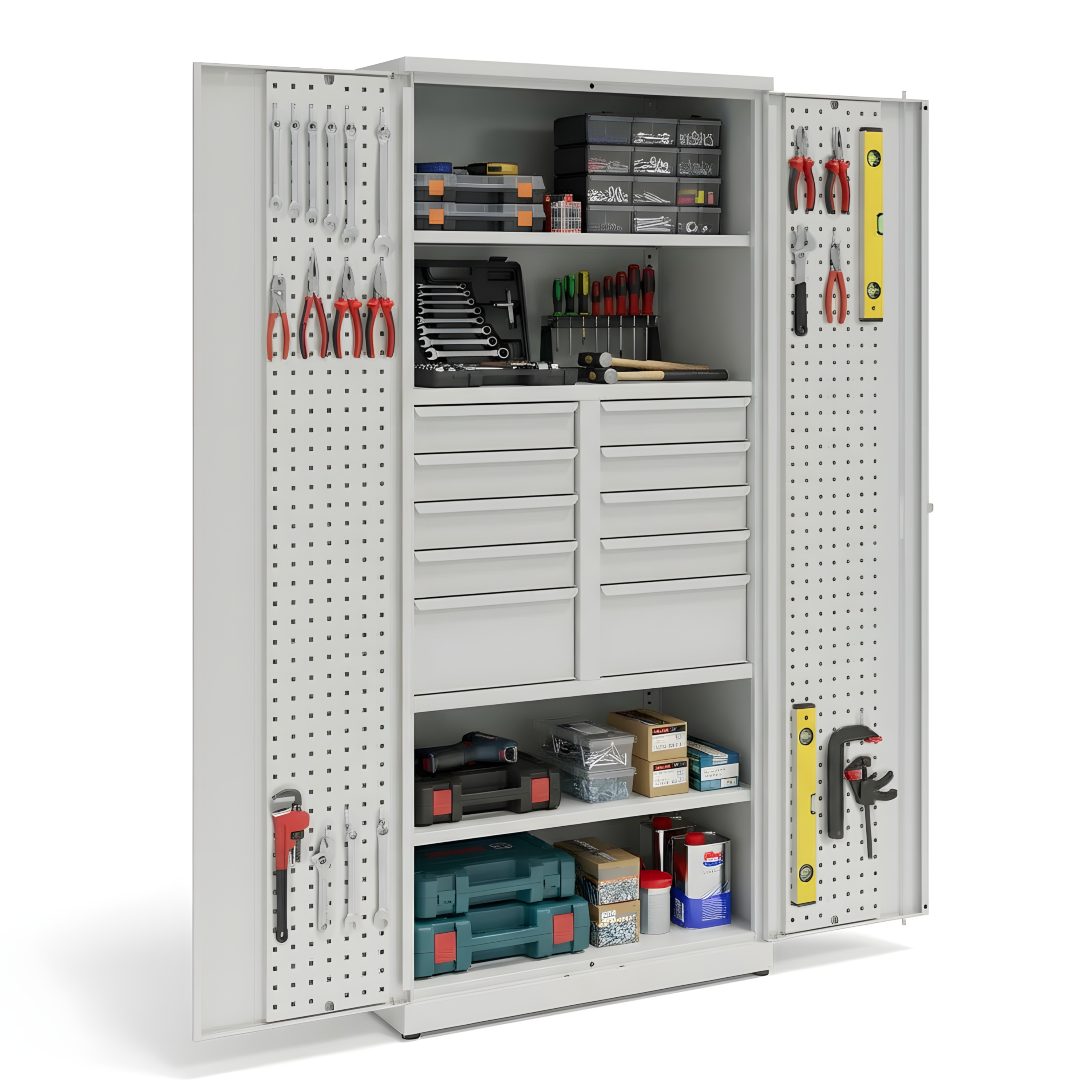 Szafa narzędziowa, 2 półki, 10 szuflad, panele perforowane na drzwiach, kod: TMSN04