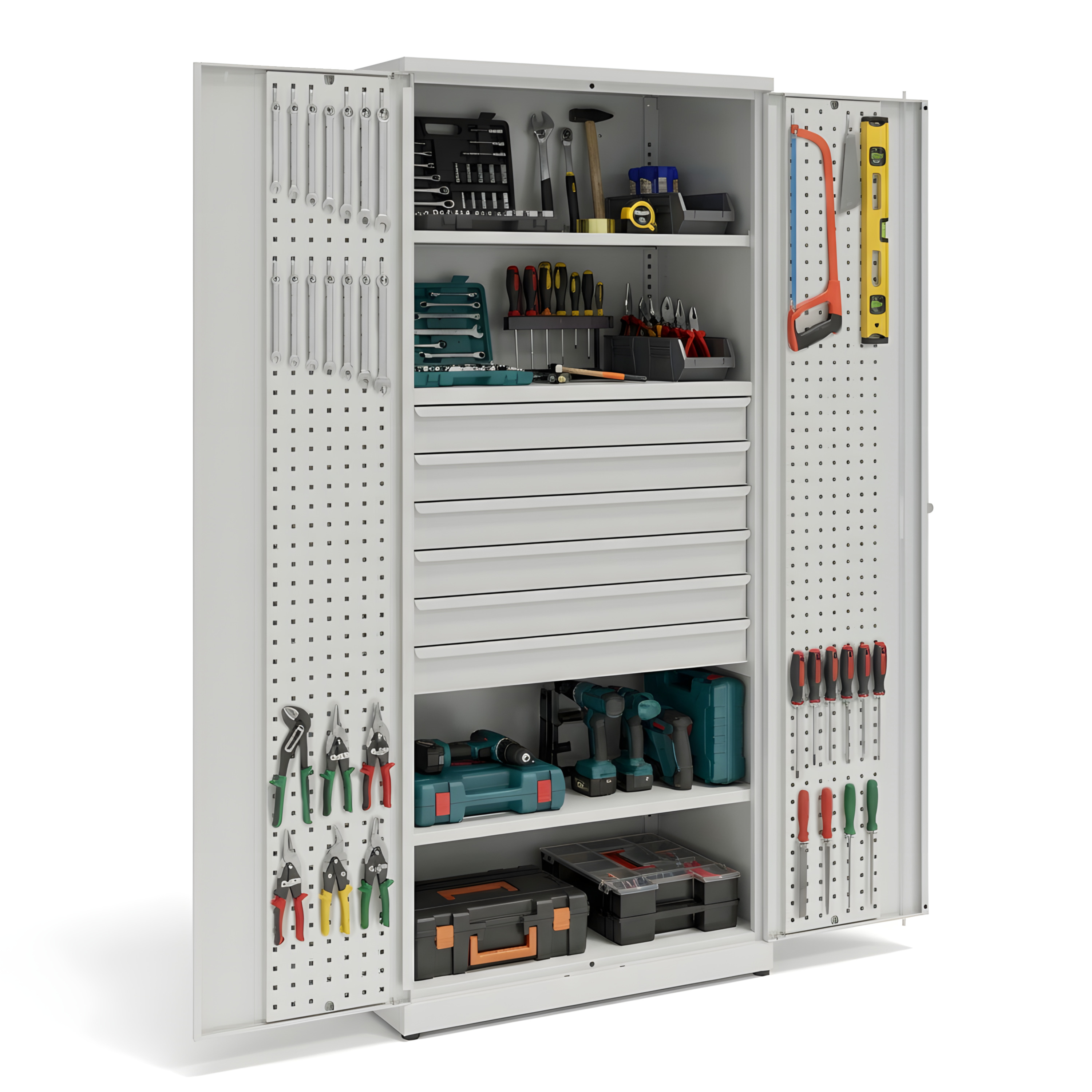 Szafa narzędziowa, 2 półki, 6 szuflad, panele perforowane na drzwiach, kod: TMSN05