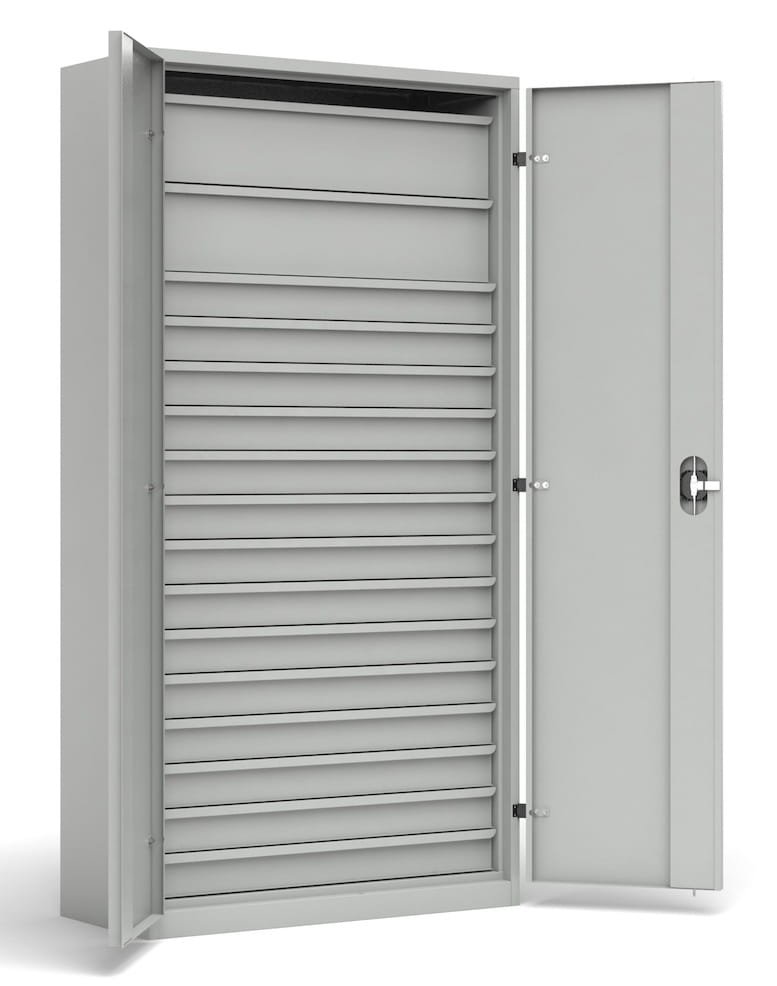 - szafa narzędziowa o masywnej konstrukcji z drzwiami pełnymi, z profilem wzmacniającym