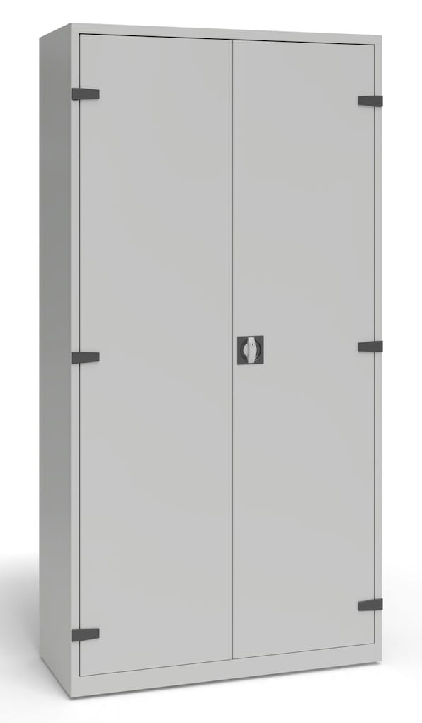 - drzwi szafy warsztatowej osadzone na zawiasach zewnętrznych, zamykane zamkiem z pokrętłem, z 3 punktowym systemem ryglowania
