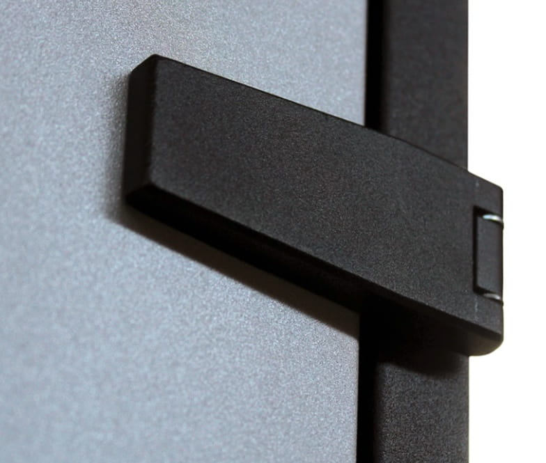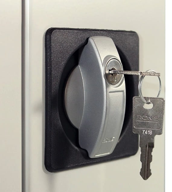 - drzwi szafki warsztatowej osadzone na zawiasach zewnętrznych, zamykane zamkiem z pokrętłem, z 3 punktowym systemem ryglowania