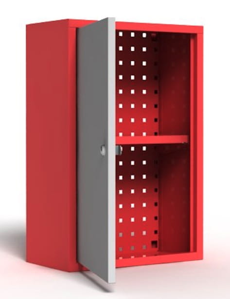 Szafka warsztatowa wisząca idealna do warsztatu, garażu. Szafka warsztatowa z drzwiami skrzydłowymi, w szafce znajduje się przestawna półka.