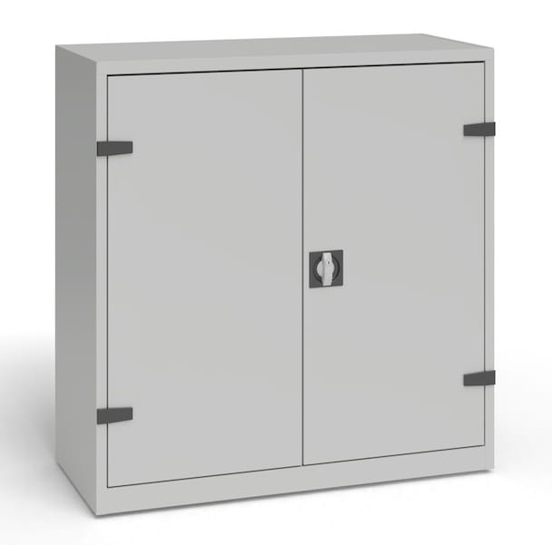 - drzwi szafki warsztatowej osadzone na zawiasach zewnętrznych, zamykane zamkiem z pokrętłem, z 3 punktowym systemem ryglowania
