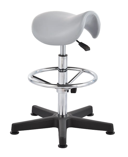 Uniwersalne krzesło siodłowe przeznaczone zarówno do przemysłu jak i do branży kosmetycznej. Bardzo wygodne ergonomiczne siedzisko, wyprofilowane sposób pozwalający na wielogodzinną pracę. Siedzisko wykonane jest z miękkiego poliuretanu. Szeroka sprawia, że jest bardzo stabilne. Regulacja wysokości siedziska odbywa się za pomocą podnośnika pneumatycznego. Krzesło siodłowe jest dostępne na kółkach lub stopkach.