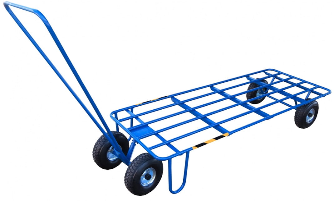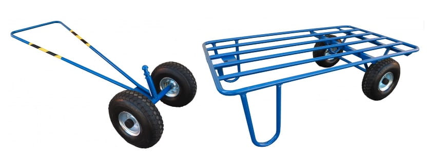 Wózek platformowy przeznaczony do przewożenia produktów i materiałów w opakowaniach typu skrzynie, kartony, worki, itp.