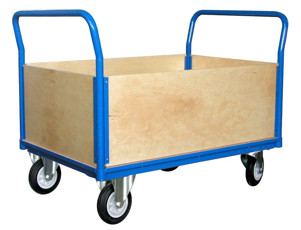 Wózek platformowy, 500-kg, 960x610, 4 burty ze sklejki, koła pełne, kod: J12805
