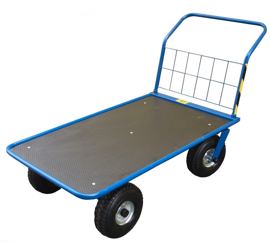 - wózek platformowy wyposażony w cztery koła pneumatyczne (pompowane) o średnicy 300 mm - dwa stałe i dwa obrotowe