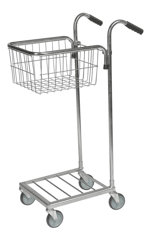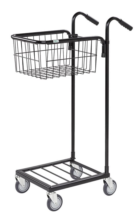 Uniwersalny mały wózek pocztowy z jednym koszem.