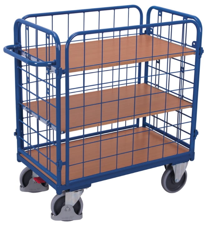 Wózek półkowy, osiatkowany, 500-kg, 3 półki, 4 boki z siatki, koła pełne, kod: VF500460
