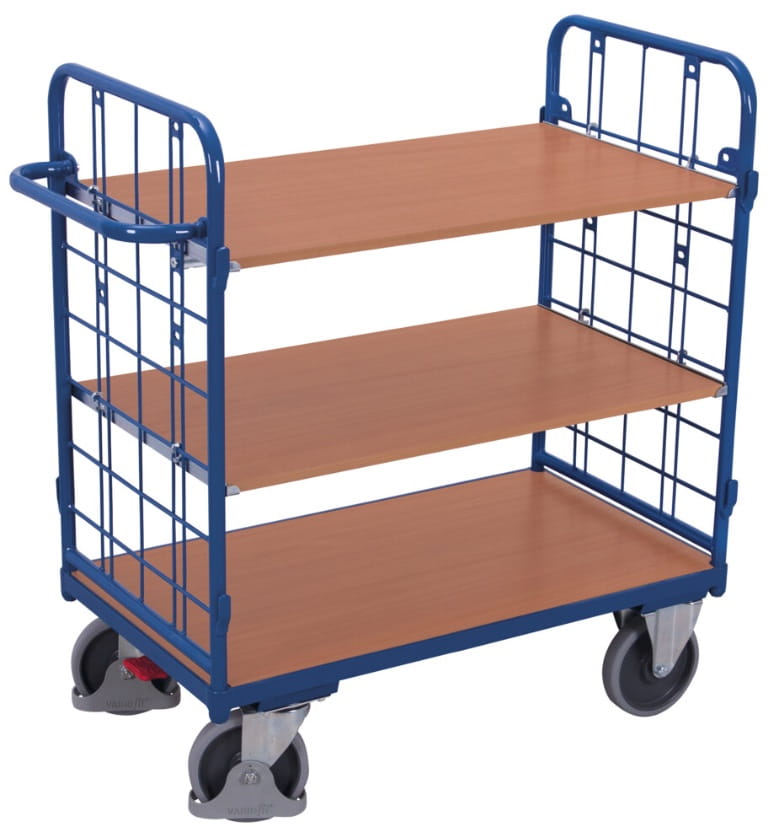 Wózek półkowy, osiatkowany, 3 półki, 500-kg, koła pełne, kod: VF500235