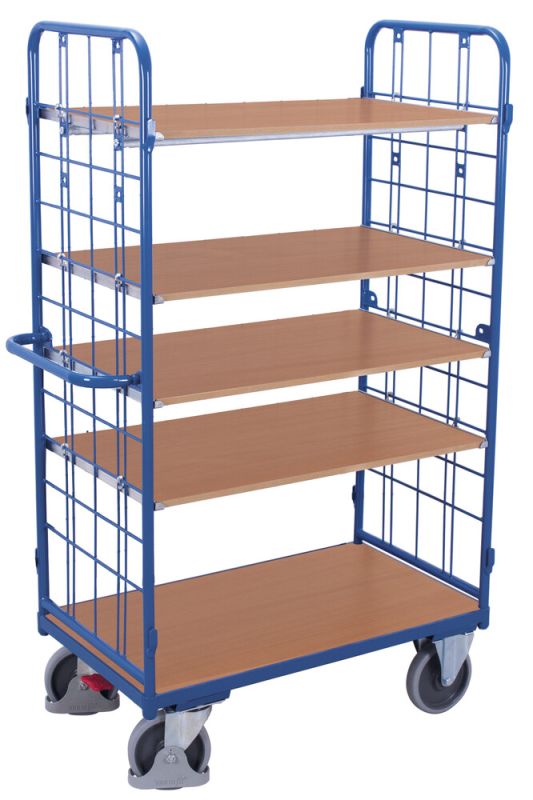 Wózek półkowy, osiatkowany, 5 półek, 500-kg, koła pełne, kod: VF500237