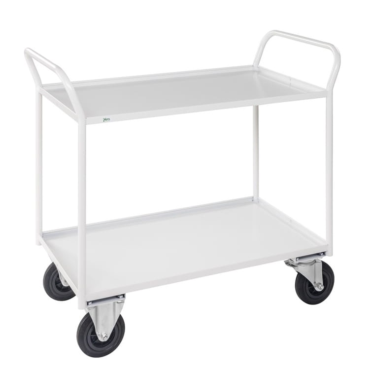 W pełni spawany solidny wózek z blachy, 2 półki. Idealny do cięższych przedmiotów.