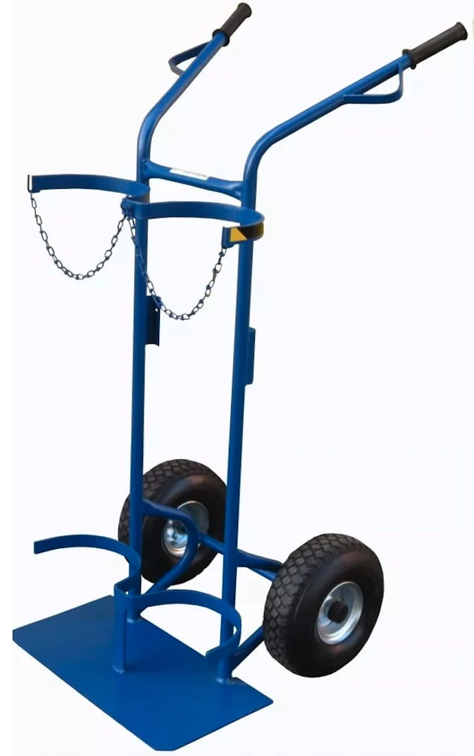 - platforma transportowa dostosowana do kształtu butli, dodatkowe zabezpieczenie łańcuszkami gwarantuje bezpieczne przewożenie butli