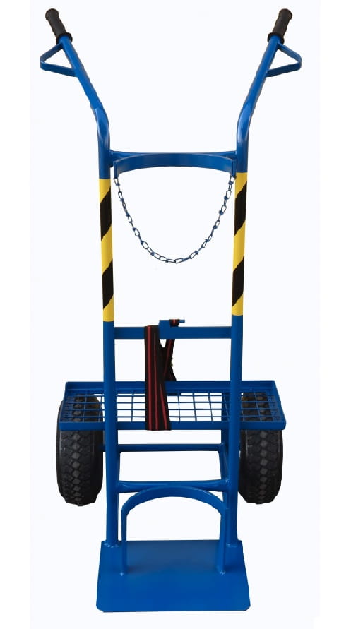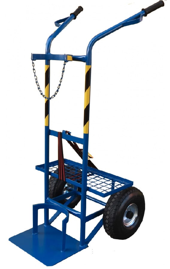 Wózek przeznaczony do przewożenia butli z gazami technicznymi o maksymalnej średnicy 230 mm i wysokości nie przekraczającej 1700 mm, wyposażony w półkę umożliwiającą przewożenie aparatury spawalniczej
