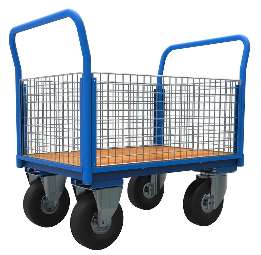 Wózek transportowy osiatkowany 500-kg, 4 burty, 960x610, koła pneumatyczne, kod: J12907