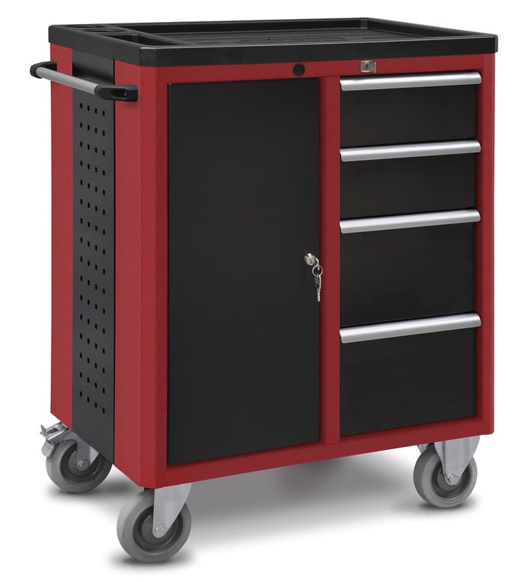Wózek warsztatowy to praktyczny wózek narzędziowy do przechowywania różnego rodzaju narzędzi. Sprawdzi się do serwisu samochodowego, warsztatu, hali produkcyjnej. Wózek narzędziowy został wyposażony w cztery szuflady i schowek. Wózek warsztatowy posiada wygodny uchwyt który ułatwia manewrowanie wózkiem.
