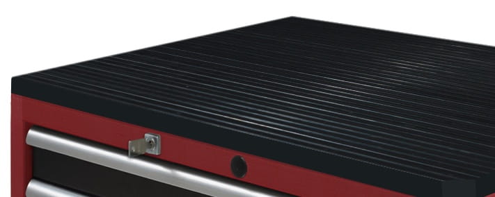 - w standardzie powierzchnia górna wózka warsztatowego wyposażona w nakładkę z tworzywa ABS która stanowi praktyczny blat roboczy ograniczony krawędziami zapobiegającymi spadaniu przedmiotów, opcjonalnie można wyposażyć wózek w różne rodzaje blatów