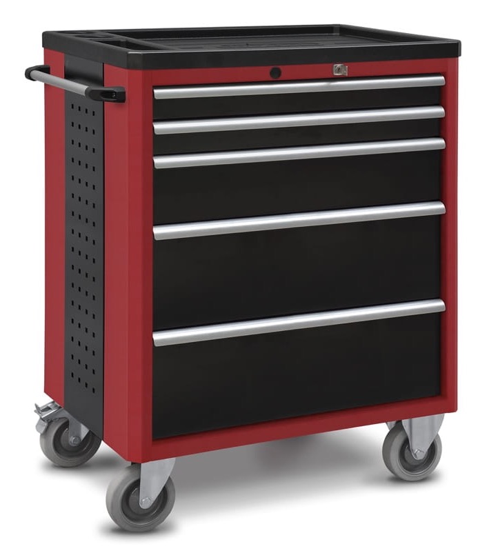 Wózek warsztatowy to praktyczny wózek narzędziowy do przechowywania różnego rodzaju narzędzi. Sprawdzi się do serwisu samochodowego, warsztatu, hali produkcyjnej. Wózek narzędziowy został wyposażony w pięć szuflad zamykanych zamkiem cylindrycznym. Wózek warsztatowy posiada wygodny uchwyt który ułatwia manewrowanie wózkiem.